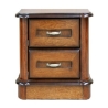 Features of the bedside cabinet include classic design in antique cherry colour, construction in oak veneer and solid wood, two handy drawers and metal handles in the colour of old gold.