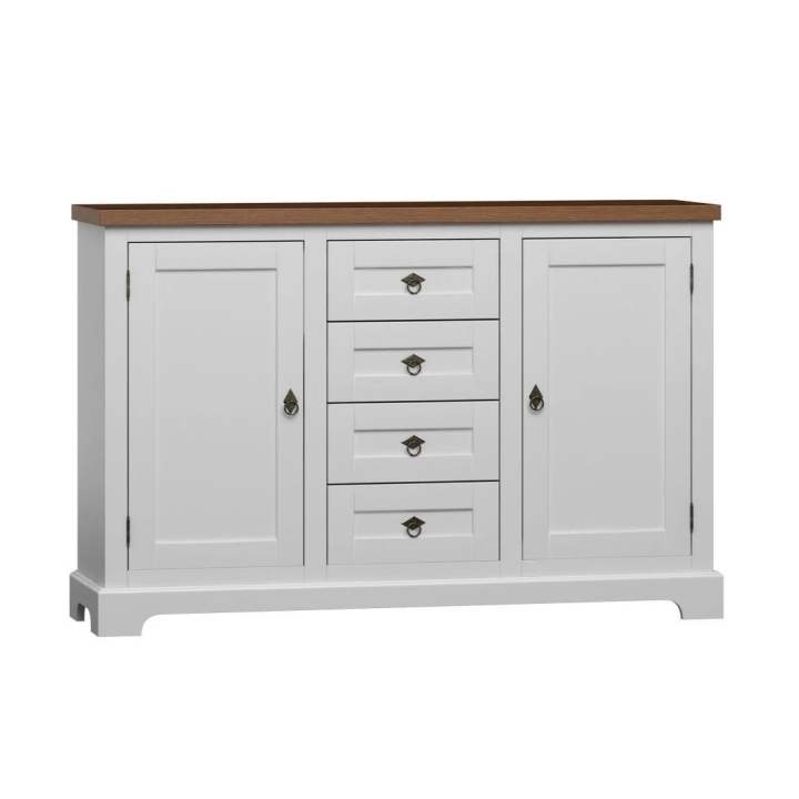 TheAvignon A09 chest of drawers from the Avignon collection comes from the Polish manufacturer Art-Futuro. The Awinion A09 chest of drawers is the perfect solution for those looking for a practical and stylish piece of storage furniture. Made from high quality materials, it provides durability and strength, allowing you to enjoy it for many years. This spacious chest of drawers offers four shelves behind the doors and four drawers. You can arrange a variety of items in it, keeping your interior tidy and organised. In addition, its elegant design and sturdy construction covered in natural oak veneer add a unique touch to your space, while the four drawers with a silent closing mechanism will fully satisfy your ergonomic needs. Whether you prefer modern or classic interiors, the chest of drawers will fit in perfectly.