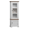 Classic styling and construction covered with oak veneer are characteristic features of the presented display cabinet. The furniture is equipped with two doors, including a glass door, concealing three internal shelves and metal knocker type handles.