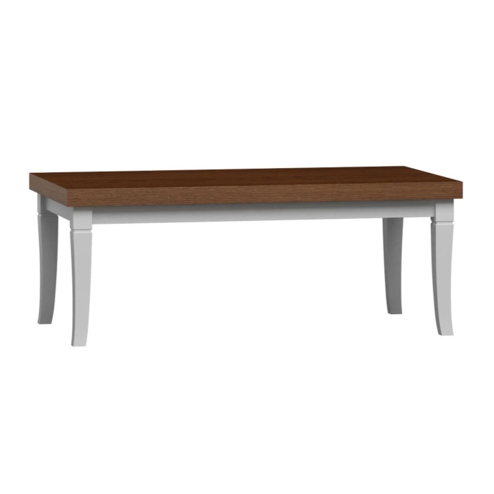 The Avignon LS40 wooden bench from the Polish manufacturer Art-Futuro is a piece of furniture with a unique, timeless design inspired by Provence. The design blends perfectly into any classically furnished interior. The solid, solid top in the colour of walnut contrasts with the interestingly shaped legs, alluding to the rest of the Avignon collection. The bench is also highly functional and is the perfect place for a decorative vase or lamp, magazines or a glass of wine. The durable construction and workmanship with high quality materials guarantees long-lasting use. The legs of the table are made of solid wood, the top is covered with natural oak veneer. The furniture is partially assembled.