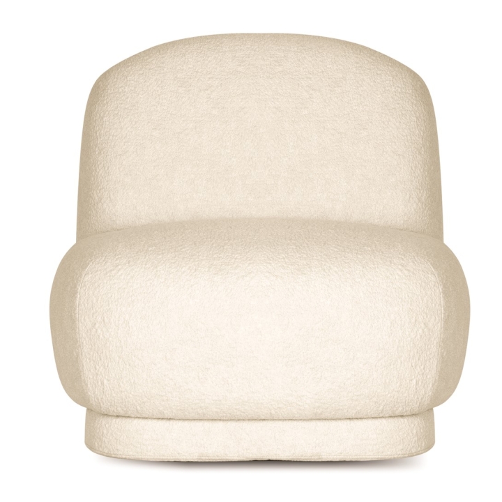 The streamlined shape and lack of armrests give the armchair lightness, making it suitable for modern interiors, minimalist arrangements and living rooms and commercial spaces. With a seat depth of 48 cm and a height of 40 cm, it provides comfortable support, while the variety of fabrics available allows for customisation to suit individual preferences.