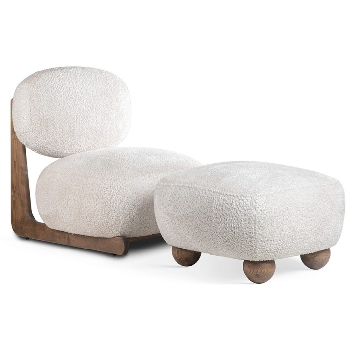 The Baobab footstool from Atreve is an upholstered footstool with wooden legs, ideal as a complement to the Baobab armchair or as an independent piece of furniture. Measuring 66x66x42 cm, the footstool is perfect for the living room, bedroom or study. The wooden base, available in a variety of colours, allows it to fit into different arrangements, emphasising the character of the interior.
