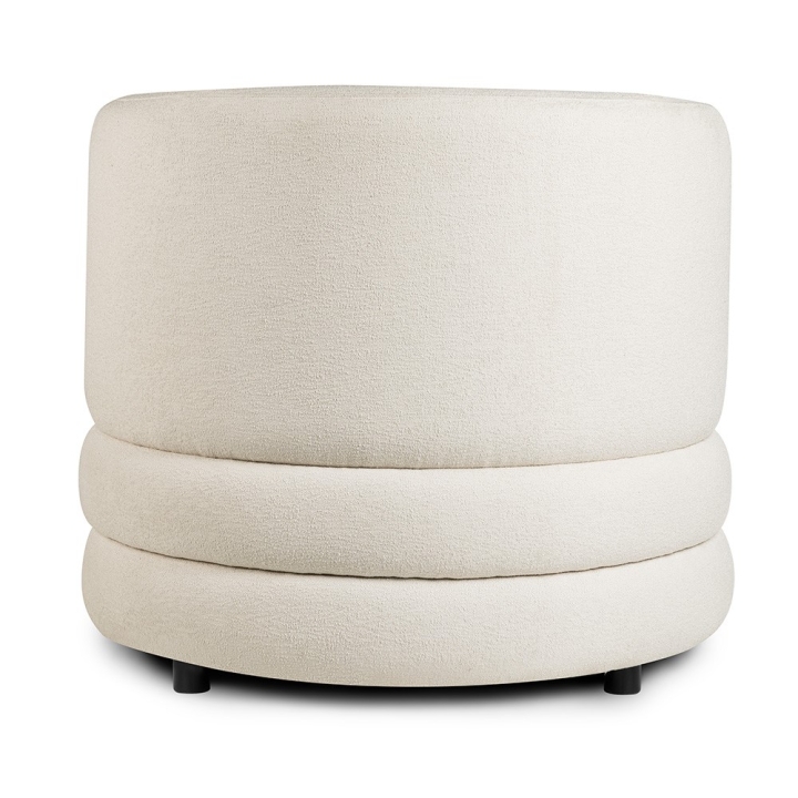 The armchair is padded with foam and upholstery belts, which ensure proper support and comfort when sitting. The rounded shapes of the back and seat give it a soft look and make it a perfect fit in living rooms, bedrooms and relaxation areas. The choice of upholstery means that the armchair can be matched to a variety of interior styles, from modern to more classic.
