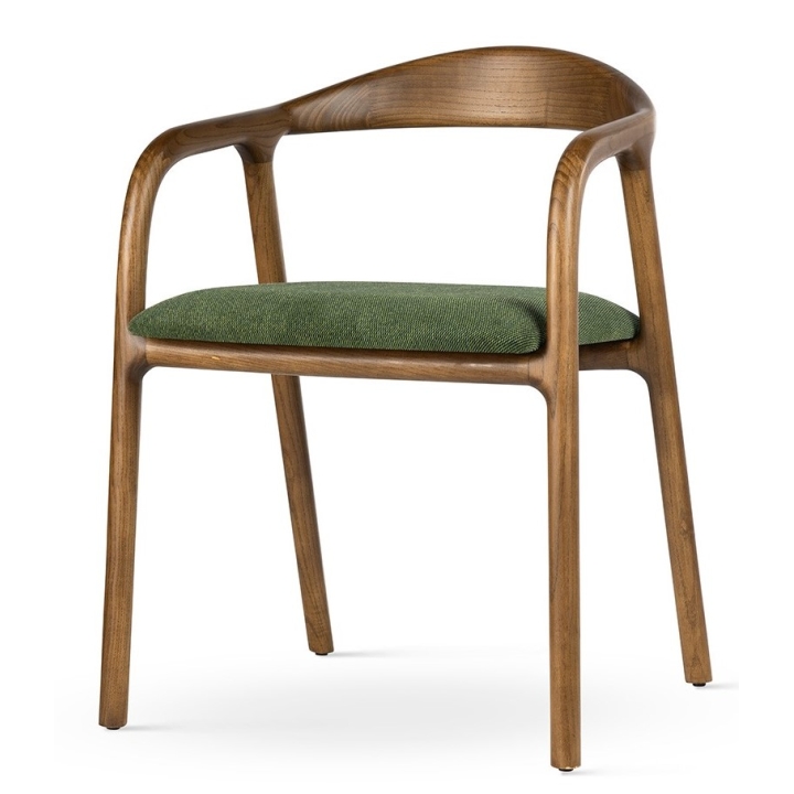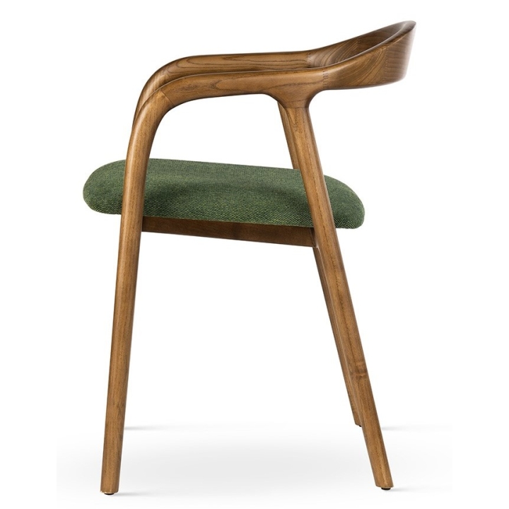 The seat, 46 cm deep and 48 cm high, has been carefully upholstered for exceptional comfort. The choice of fabric, both in terms of texture and colour, allows you to tailor the model to your personal preferences. In addition, a variety of leg colour options are available, allowing complete freedom to match a particular interior vision.