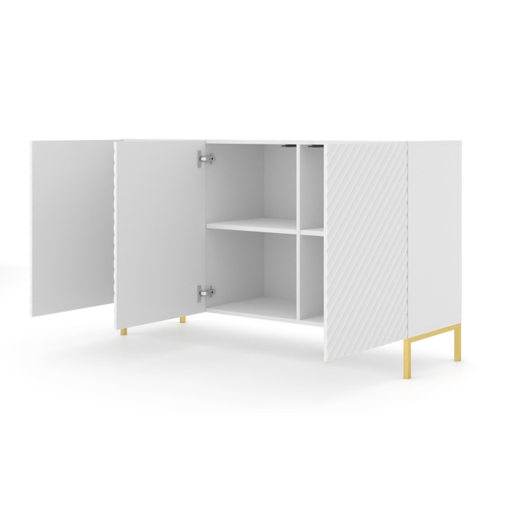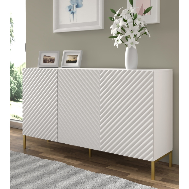 The Surf 150 3D chest of drawers comes from Bim Furniture. The Surf 150 3D chest of drawers is a stylish fluted piece of furniture with a functional design. It is made from durable materials and has a white matt finish that gives it a modern look. This chest of drawers is ideal for storing a variety of items in the living room, bedroom or office. The chest of drawers is made of high quality materials, which guarantees its durability and sturdiness. The furniture is stable and sturdy, so it can last for many years. The white matt finish gives the chest of drawers a modern and versatile character, which blends perfectly with different interior styles. The dimensions of the Surf 150 3D chest of drawers are adapted to the standard needs of the users, making the furniture practical and functional. It can also be easily matched to existing interior design, thanks to its neutral colour and simple design.