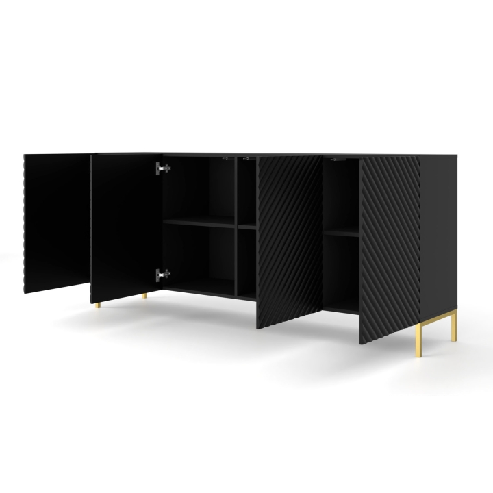 Looking for the perfect combination of style, functionality and robustness in a chest of drawers? The Surf 200 4D chest of drawers from the renowned manufacturer BIM Furniture will meet your expectations! Measuring 200 cm wide, 87 cm high and 42 cm deep, this chest of drawers will not only provide you with ample storage space, but will also be a design element of your interior. The interior of the chest of drawers hides plenty of space for all the things you need, from clothes to home accessories. This will keep your space tidy without sacrificing elegance. The chest of drawers is available in two trendy colours: black matte and white matte, which will allow you to perfectly match it to the character of your interior. The solid metal legs guarantee stability and durability, and the golden colour of the legs adds a unique charm to the chest of drawers. In addition, the grooved surface of the dresser gives it a unique character, catching the eye and adding a unique style to your space. Invest in the Surf 200 4D Che st of Drawers from BIM Furniture and enjoy not only practicality but also a designer finish to your interior!