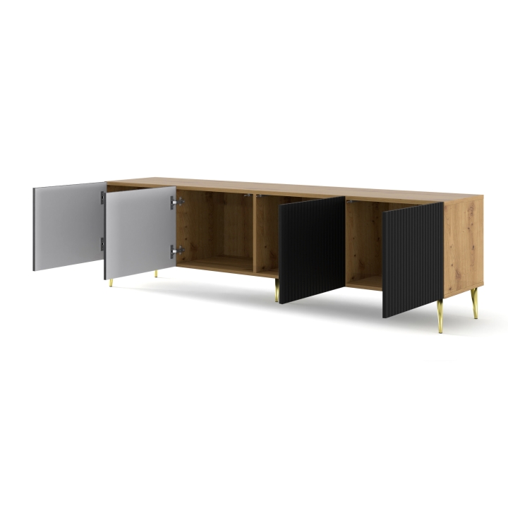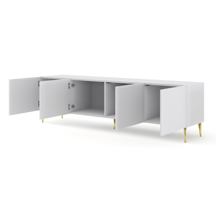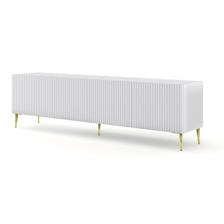 The 200 4D Ravenna B RTV cabinet comes from the manufacturer Bim Furnituro. The 200 cm wide RTV cabinet is a piece of furniture, fluted, designed specifically for storing RTV equipment such as a TV, DVD player, games console, etc. The cabinet offers spacious shelves or compartments to help organise and arrange electronic devices and accessories such as remotes, cables or games. It can also feature holes or special cable grommets to keep cables neatly routed and eliminate clutter. Made from high quality materials, the cabinet is durable and robust.
