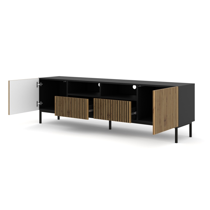 The RTV200 2D2S Ravenna F cabinet comes from Bim Furniture. The RTV200 2D2S Ravenna F cabinet is a modern and functional piece of furniture that provides adequate space for storing RTV equipment and decorates the interior with its elegant style. It has been made of solid materials, which gives confidence in its durability and long-lasting strength. The cabinet is distinguished by its minimalist design, which blends harmoniously with various interior design styles, adding a modern and elegant touch. It offers a generous surface area of 200 cm wide, allowing you to comfortably place your TV, games console, set-top box and other media devices. In addition, two drawers and two cabinets provide adequate space for storing remote controls, cables, games and other small items. This practical piece of furniture will keep your living room, living room or any other room tidy, while providing an attractive decorative accent that will satisfy the most demanding users.