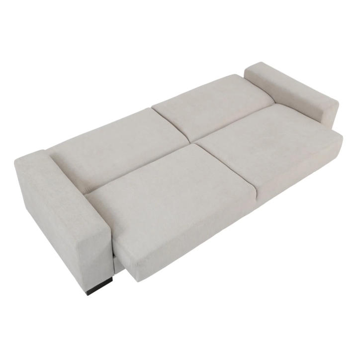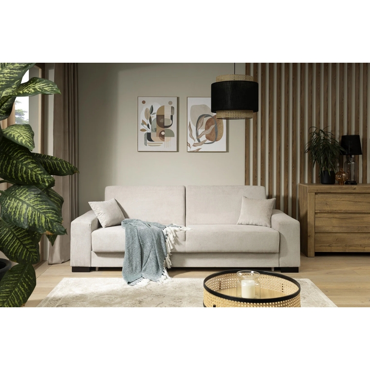 The Rubio sofa bed by Black Red White is a three-seater sofa that easily turns into a comfortable bed thanks to the clic-clak mechanism. The unfolding system works smoothly and lightly, which significantly facilitates daily use. The seat and backrest construction based on corrugated springs guarantees a uniform, comfortable sleeping surface of 188 × 118 cm.