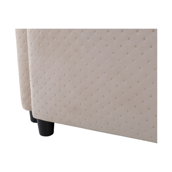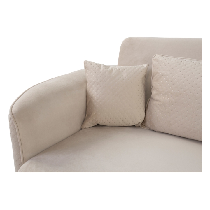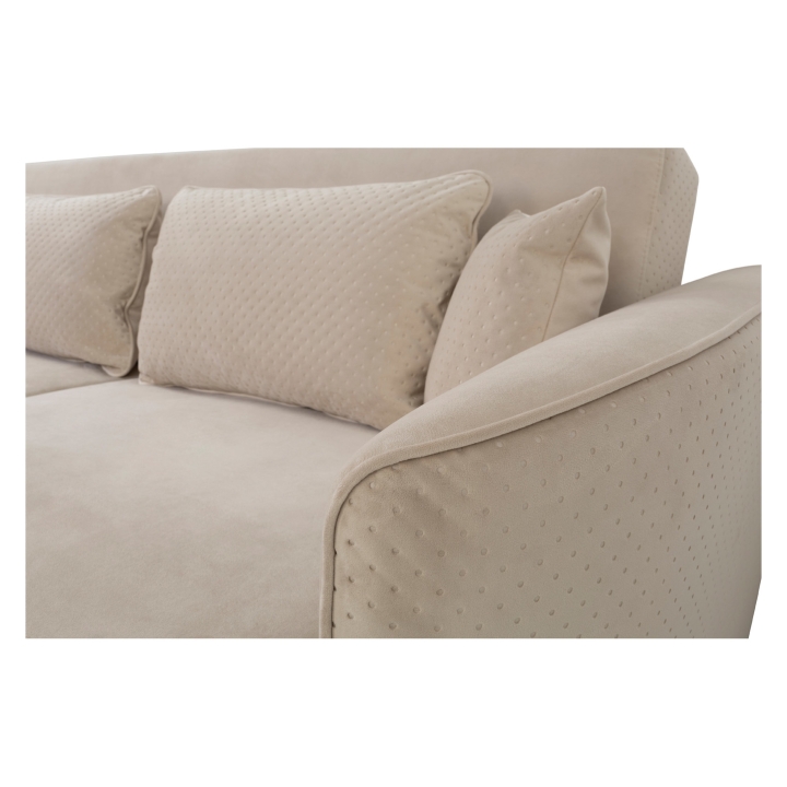 The construction of the Akaro sofa provides stability and durability for everyday use. The furniture is 227 cm wide, 114 cm deep and the overall height is 85 cm. The seat is 44 cm high and 73 cm deep, allowing the user to sit comfortably. The total weight of the furniture is 98 kg.