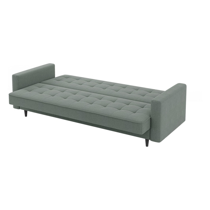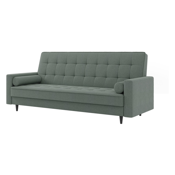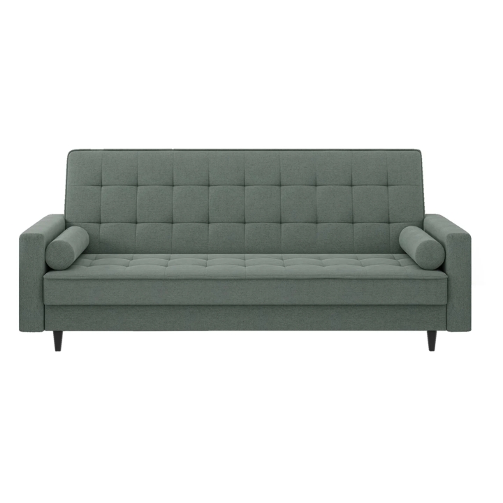 The sofa has a simple folding mechanism that allows you to quickly obtain a sleeping surface of 186 × 121 cm. The built-in storage compartment allows you to store bedding or other items. When sitting, the 56 cm depth and 43 cm seat height promote a comfortable position, while the ergonomic profile of the backrest enhances resting comfort. Two rollers are included, which can be used as lumbar support or head cushions.
