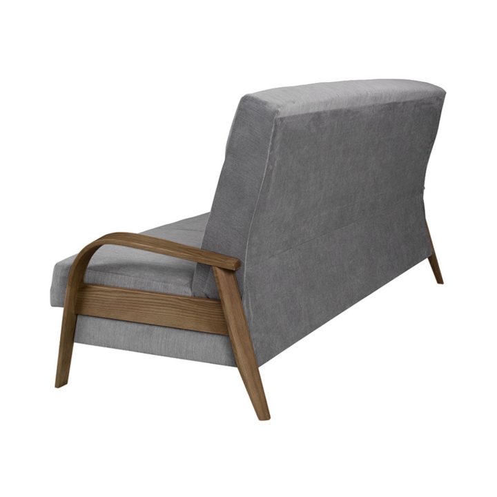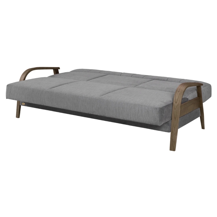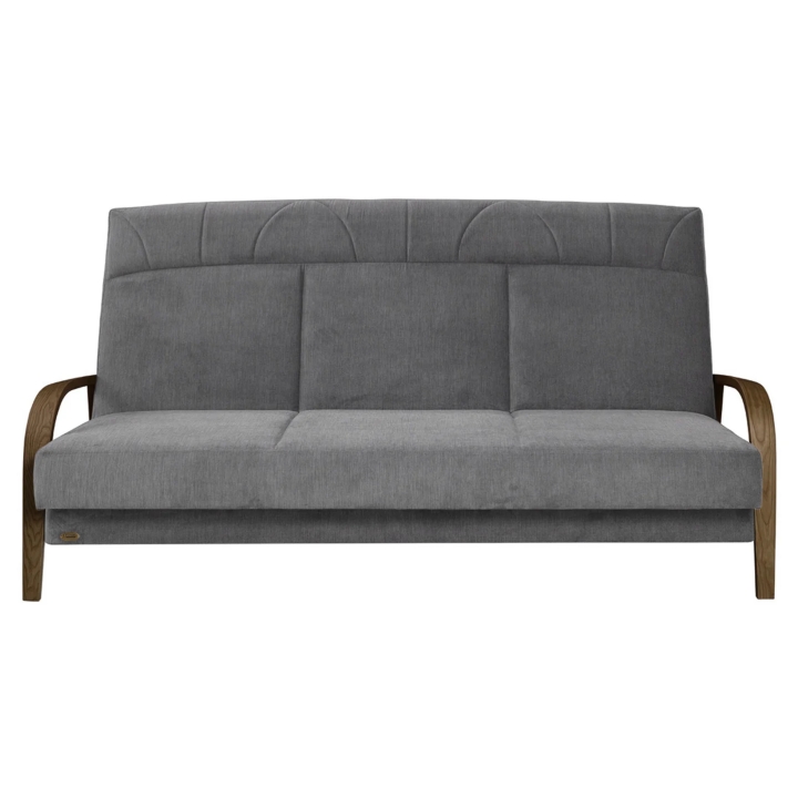 The model is equipped with a click-clack mechanism, which enables quick unfolding to the sleeping function. There is an integrated bedding container under the seat. The 60 cm deep seat and high backrest support a stable and comfortable seating position. The entire unit is set on raised feet for easy access to the floor when cleaning.