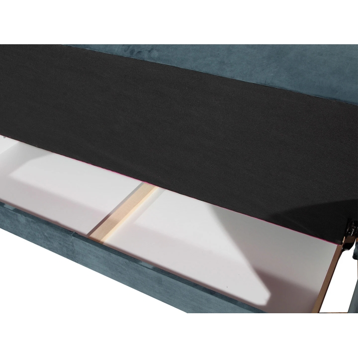 Thanks to the narrow sides, we gain more seating space - the seat width is as much as 188 cm. The sofa has a simple and fast unfolding mechanism, as well as a spacious bedding container for everyday use. The stylised plastic legs add lightness to the whole, while the striking stitching on the backrest gives the furniture a distinctive character.