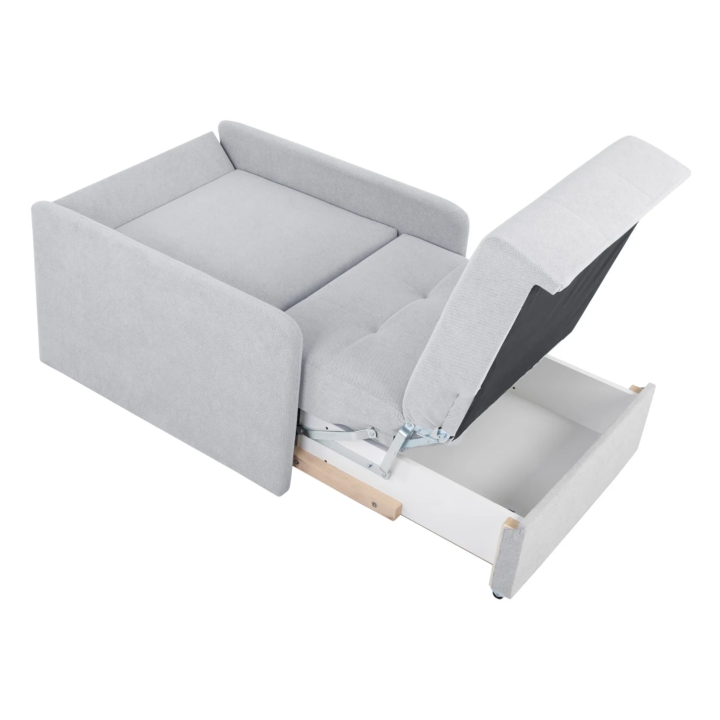 The Como single sofa is the answer to the needs of people living in small spaces who do not want to give up the comfort of everyday relaxation. With a width of 89 cm and a depth of 104 cm, this piece of furniture is perfect for smaller spaces - from a youth room, to a guest room, to a small living room. When unfolded, it offers a sleeping surface of 77 × 190 cm, allowing you to sleep soundly every night or comfortably accommodate guests.