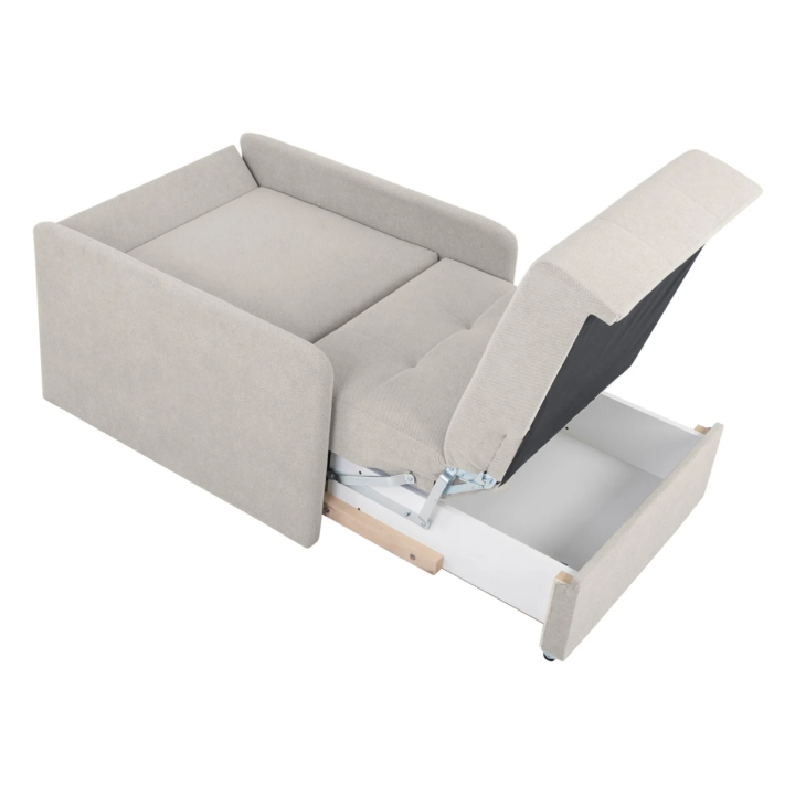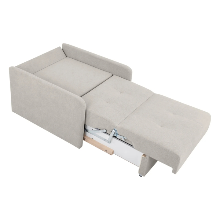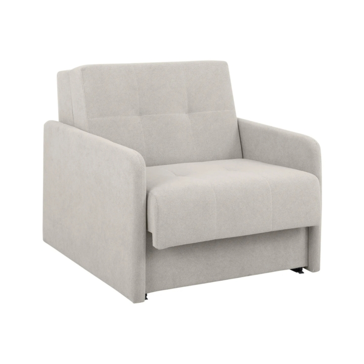 The Como single sofa is the answer to the needs of people living in small spaces who do not want to give up the comfort of everyday relaxation. With a width of 89 cm and a depth of 104 cm, this piece of furniture is perfect for smaller spaces - from a youth room, to a guest room, to a small living room. When unfolded, it offers a sleeping surface of 77 × 190 cm, allowing you to sleep soundly every night or comfortably accommodate guests.