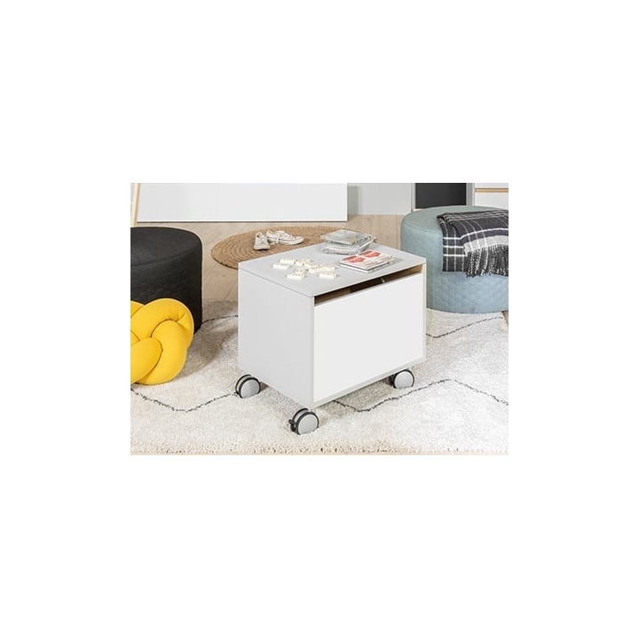 This compact piece of furniture, thanks to its mobility and universal appearance, will find many uses in the everyday life of a child or teenager. It can be used as a desk helper, additional storage space for toys, books or electronics, or even as a bedside table.