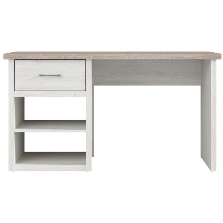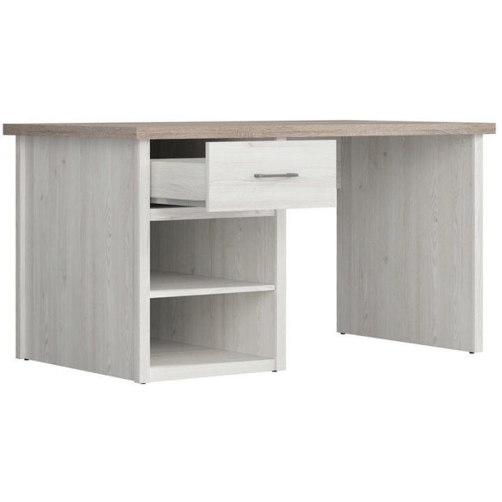 The functionality of the desk is enhanced by a drawer and two open shelves, which can accommodate everything needed in daily use - from pens and chargers to documents, binders, a printer or stationery. Another advantage is the possibility of choosing the side of assembly - the drawer and shelves can be placed on the left or right side, adjusting the furniture to the arrangement in the room and your own habits.