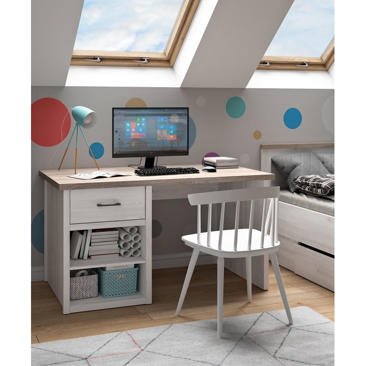 The wide top offers space for a laptop, monitor, notebooks, books and essential office accessories. The comfortable height and depth of the desk allows you to work comfortably even for many hours. It is a good solution for both the student and the adult user.