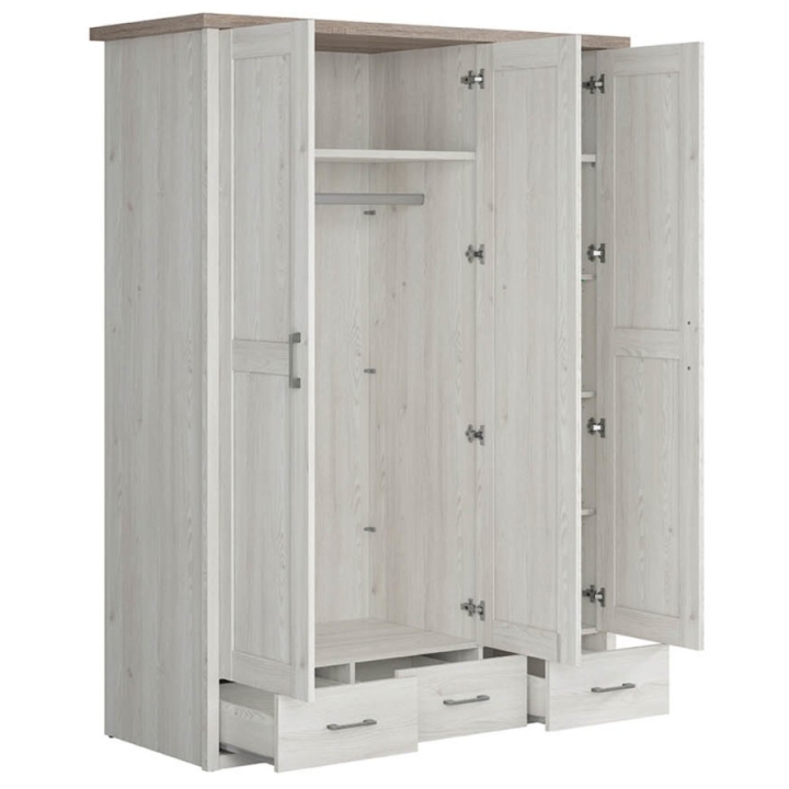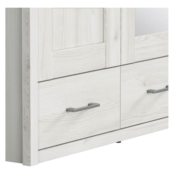 The Luca Juzi 3D3S wardrobe is a piece of furniture that combines capacity, aesthetics and functionality in the spirit of Provençal simplicity. Designed with the needs of everyday storage in mind, it is ideal for the bedroom, wardrobe, as well as the youth room. The three-door design with a mirrored front conceals a well-thought-out interior that allows you to keep your personal belongings tidy and well organised.
