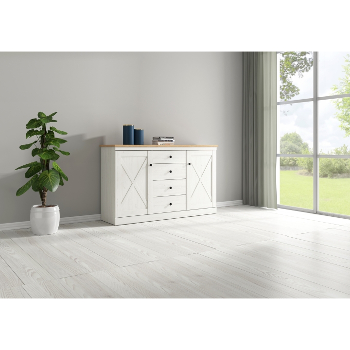 The 'Frija' chest of drawers is a stylish and functional piece of furniture that is perfect for various rooms such as the bedroom, living room or hallway. Made of high quality materials, it guarantees durability and solidity of use. Its modern design and variety of colours allow it to fit into various interior arrangements, adding to their unique character. The "Frija" chest of drawers has capacious drawers and spacious cabinets, which allows for orderly storage of various items and accessories. It is not only a practical piece of furniture, but also a striking decorative element that will enrich the look of your interior.