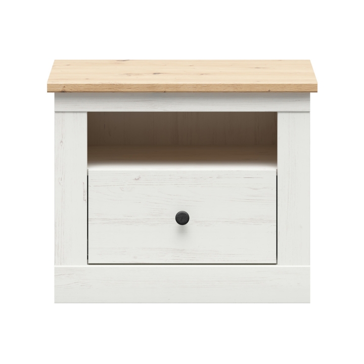 The Frija Nightstand by Black Red White is not only a practical piece of equipment for your bedroom, but also a unique decorative accessory. This cabinet is a combination of functionality and style that will bring comfort and beauty to your sleeping space. Equipped with one drawer and an open shelf, it offers enough space to store essential items such as books, a phone or a bedside lamp. The drawer allows you to keep smaller items in order, while the open shelf allows you to display decorations or your favourite books. The modern lines, high quality materials and careful finishing make it a highlight of the bedroom.