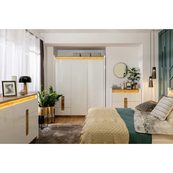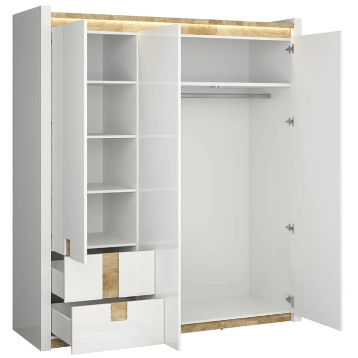 The Alameda wardrobe by Black Red White is an intelligently designed piece of furniture capable of holding a variety of things. Equipped with shelves, drawers and baskets, it allows you to store your clothes, underwear, accessories and other everyday items in an orderly manner. You can easily organise your clothes by category, keeping things tidy and making everyday outfit selection easier. The design of the furniture is carefully thought out to suit different interior styles. It can have modern and minimalist lines, perfectly suited to modern décor, or classic and elegant embellishments to suit more traditional settings