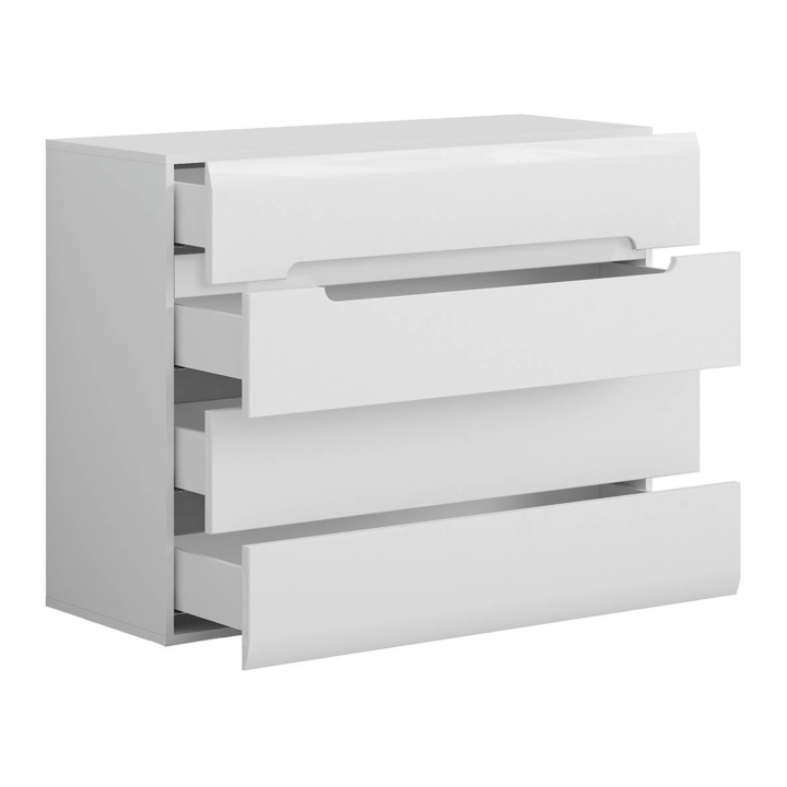 The Azteca Trio chest with four drawers from furniture manufacturer Black Red White is a piece of furniture that is both modest and surprising in its design. The aesthetic construction and white colour scheme make it universal, so it will certainly find its way into any room. The decorative strip and stylish milling on the top and bottom of the fronts introduce tasteful accents, which are characteristic of the Azteca Trio collection by furniture manufacturer Black Red White. The chest of drawers fits perfectly with the elements of this series.