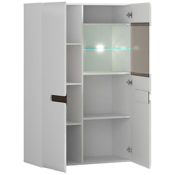The Azteca Trio two-door vitrine by furniture manufacturer Black Red White with its aesthetic and subdued design is distinguished by its asymmetry. Doors of different widths, glazing on one of the wings, and handles of different lengths make it not another simple, monotonous display cabinet. The glazed shelves with LED light will emphasise the beauty of your decoration and all your precious items, while the covered shelves will allow you to store all the items you do not want to display. The cabinet is fitted with hinges with a soft-closing system to increase the comfort of the furniture. When combined with other elements of the Azteca collection, the cabinet will create a perfect set fulfilling all your requirements.