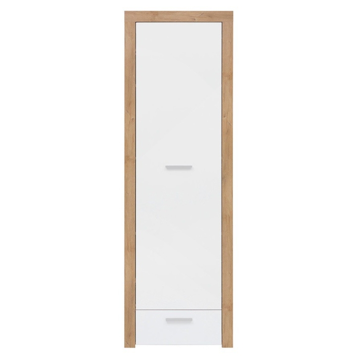 The Balderbookcase from Black Red White is a practical piece of furniture. Behind the full front you will find 3 shelves, which will make it easier to organise things. The drawer in the lower part of the closed bookcase is a place for small items. The geometric line and design of the furniture is emphasised by the bold slats of the body. The colour of warm oak riviera was combined with neutral white gloss to create a universal base for decorations. Comfort of use is ensured by branded accessories and simple handles. Combine the Balder bookcase with other pieces from the collection to create a coherent arrangement of your interior. Thanks to the many different modules, you can furnish your living room, bedroom and youth room at will.