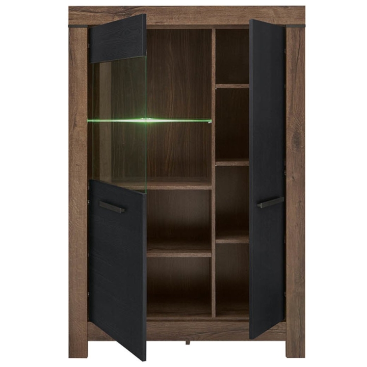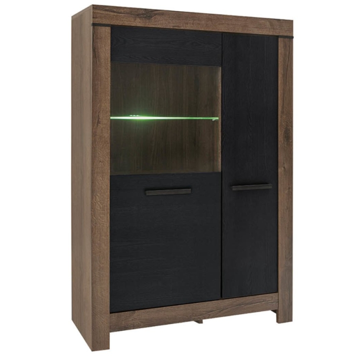 The Balindisplay cabinet with lighting by Black Red White will complete your living room arrangement by providing storage and display space. Behind the full front you will find practical shelves where you can store any accessories. The tempered glass front provides space for display. LED lighting, available as standard, can be placed under the glass shelves to create a special atmosphere. Pay attention to the unique colour scheme of the showcase for the living room. The fronts in monaster oak or black oak have been combined with the carcass in monaster oak, which reflects the beauty of the wood grain. The smooth fronts are combined with the thickened carcass, which provides a striking frame for them. Hinges with a soft-closing system ensure comfortable and undisturbed use. You can combine the diverse modules of the Balin collection to create an ergonomic and stylish living room space.