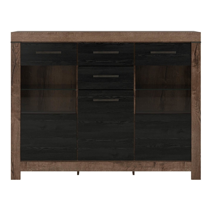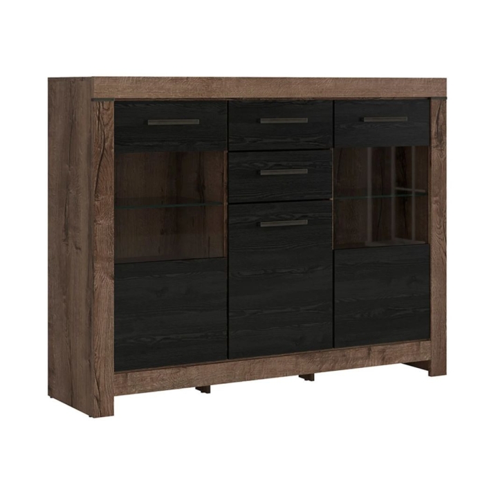 The Balin chest of drawers by Black Red White is the perfect organiser for stored things. Two display cabinets placed on the outer sides, as well as 2 handy drawers and a practical cabinet, create an ideal place to store and display family or travel mementos. How do you create a special atmosphere? By switching on the LED lighting, available as standard, which is placed under the glass shelves. The smooth fronts are surrounded by a bold body that emphasises the classic, solid style. Convenience and comfort of use are ensured by hinges with a soft-closing system. You can combine the Balin chest of drawers with many different modules available in the collection. Choose those which will best fit into the space of your home.