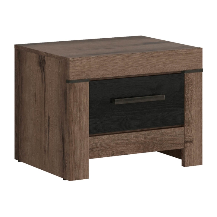 The Balin bedside cabinet by Black Red White will always be within easy reach - both in the evening and in the morning. The handy drawer is the perfect place for care cosmetics, medicines and a book. The tabletop has space for a bedside lamp, alarm clock, telephone and a glass of water. What makes it stand out is the striking bold body, which harmonises with the smooth surface of the fronts. We made this bedroom furniture in 3 fashionable colour versions. By combining the Balin bedside cabinet with other elements of the collection, such as a bed, wardrobe and chests of drawers, you will gain a coherent and ergonomic development of the bedroom.