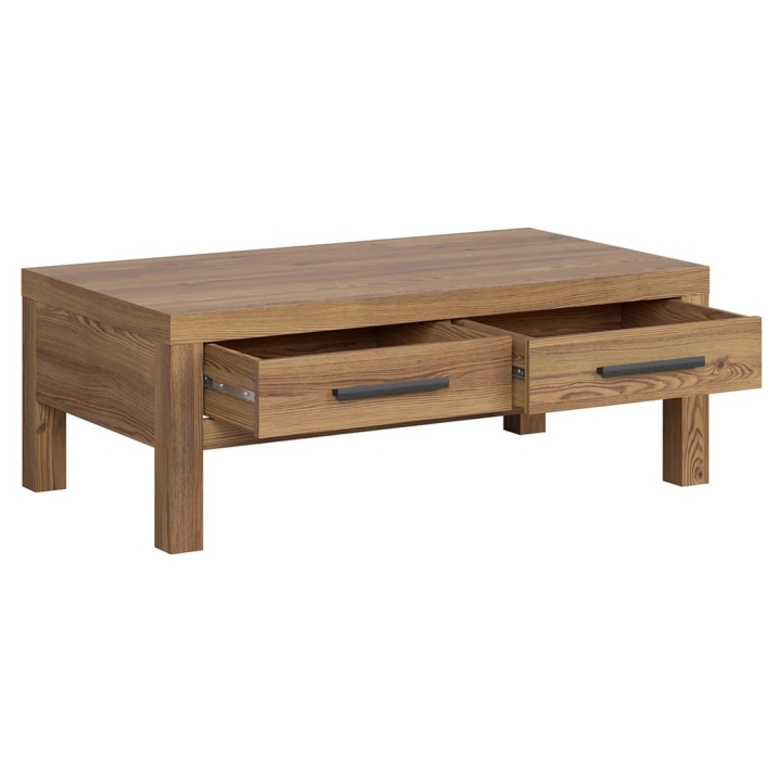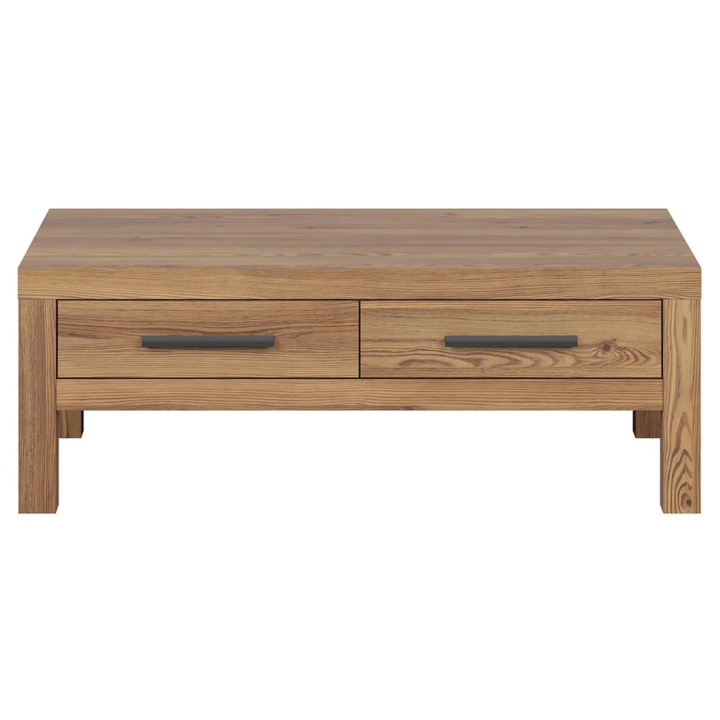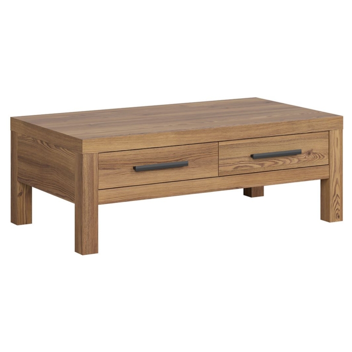 The Balin bench by Black Red White is a way to make modern interiors stylishly broken and classically emphasised. What distinguishes the Balin bench is not only its style, but also its functionality. On the spacious top you will find space for a cup of coffee and an impressive vase of flowers. Just under the top you will find 2 practical drawers, which you can use to store magazines, a remote control or other personal trinkets. Note the striking colour combination of the carcass in oak monasterie and the fronts in a dark shade of oak black. The stability of the furniture is ensured by the solid legs of the bench, which correspond to the thickened sides in the bodies of the other furniture in the collection. You can combine the living room bench with other pieces from the Balin collection to create stunning arrangements.