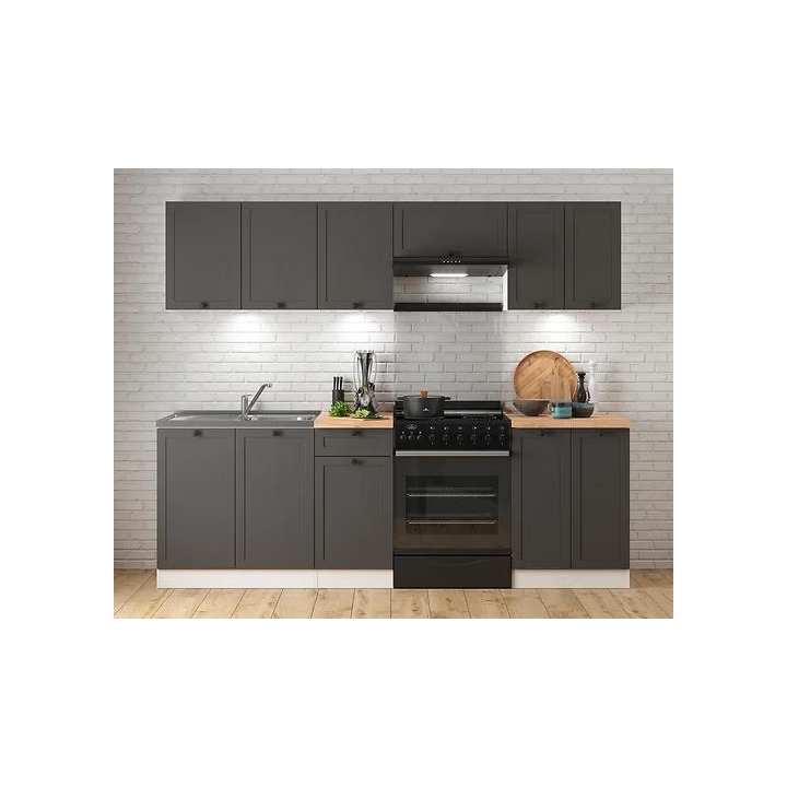The graphite colour of kitchen furniture is a great choice that brings elegance and modern style to the interior. This versatile shade of grey suits many design styles, from minimalist to industrial. Furniture in this colour blends perfectly with white, wood or metal accents to create a coherent and aesthetically pleasing whole. In addition, dark colours of kitchen furniture are practical as they hide minor dirt and traces of use, making it easier to keep clean. Buying furniture in graphite is an investment for years to come, which will never go out of fashion and will please the eye for a long time.