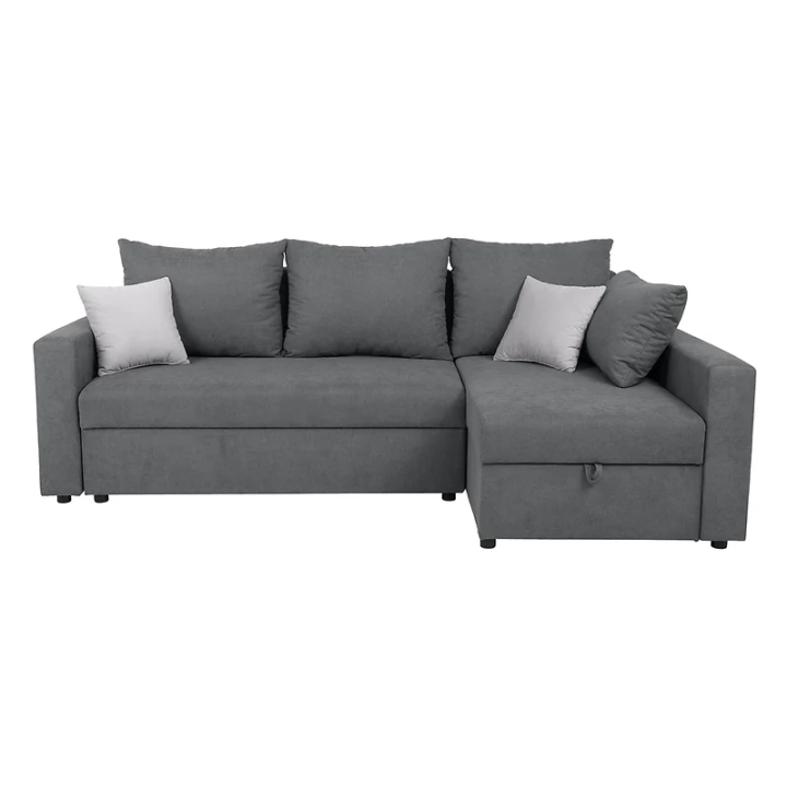 One of the distinguishing features of this corner sofa is the option of a left or right-handed version, which must be determined before the first installation. This solution allows you to fit the furniture perfectly into your living room. In addition, the two bedding bins offer ample storage space, which is ideal for hiding extra blankets or cushions.