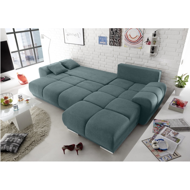 Withan expansive sleeping area of 242x133 cm, Noti is the perfect choice for both everyday use and for guests who need a comfortable place to sleep. Thanks to the corrugated springs and high-quality foam in the seat, the corner sofa provides optimum support and relaxation both when sitting and lying down.