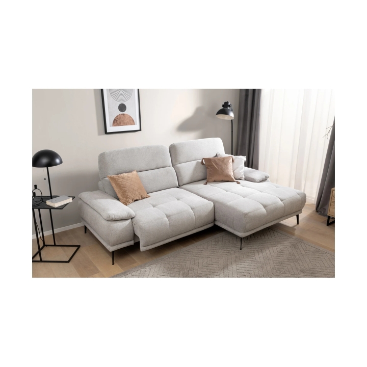The electric seat extension is an innovative solution that allows the corner sofa to be quickly and effortlessly transformed into a comfortable sleeping place for one person. Two adjustable headrests further enhance the comfort of use, especially during long evenings spent watching your favourite films.
