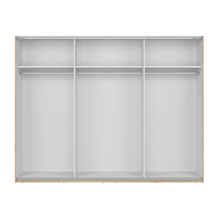 The Glamour 270 cm sliding wardrobe is an option for those who appreciate storage space tailored to real needs, without sacrificing distinctive design. This model offers up to three zones with clothes hanging rods - so you can store long coats, jackets, dresses and shirts in an orderly way, with easy access every day.