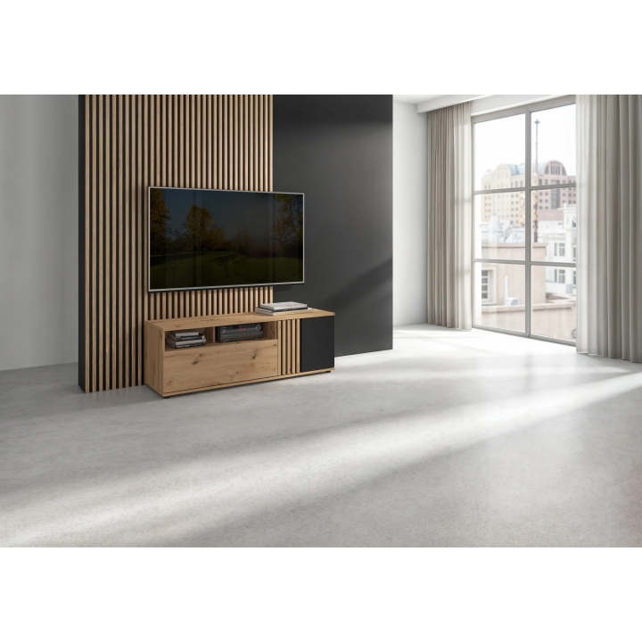 RTV cabinet Vabres 135 cm with doors and drawer oak artisan lamella Black Red White