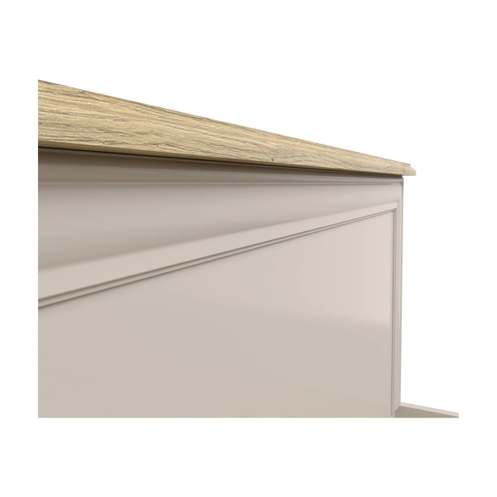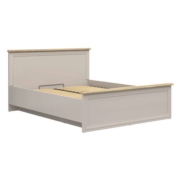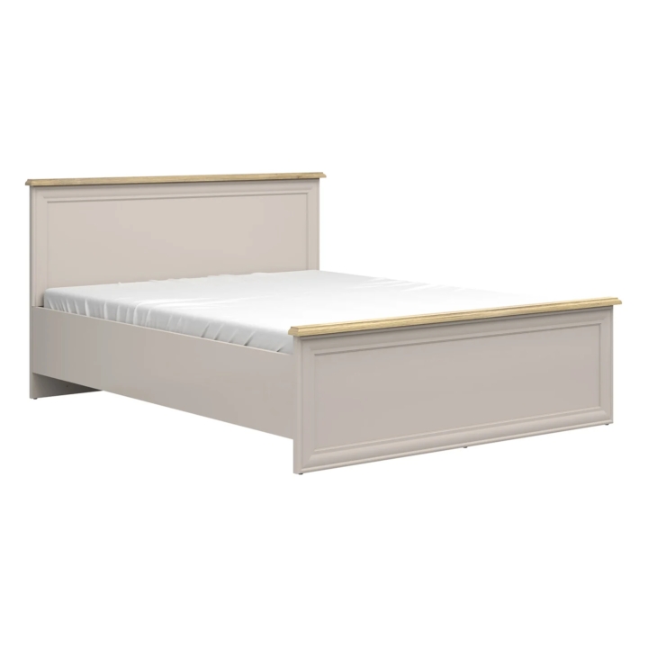 The kashmir finish combined with the mauvella oak décor creates a subtle contrast that fits perfectly into fashionable arrangements. The light frame and higher headrest with decorative borders add lightness and allow the bed to also have a decorative function. You can successfully combine it with other furniture from the Anga collection - bedside tables, a chest of drawers or a four-door wardrobe.