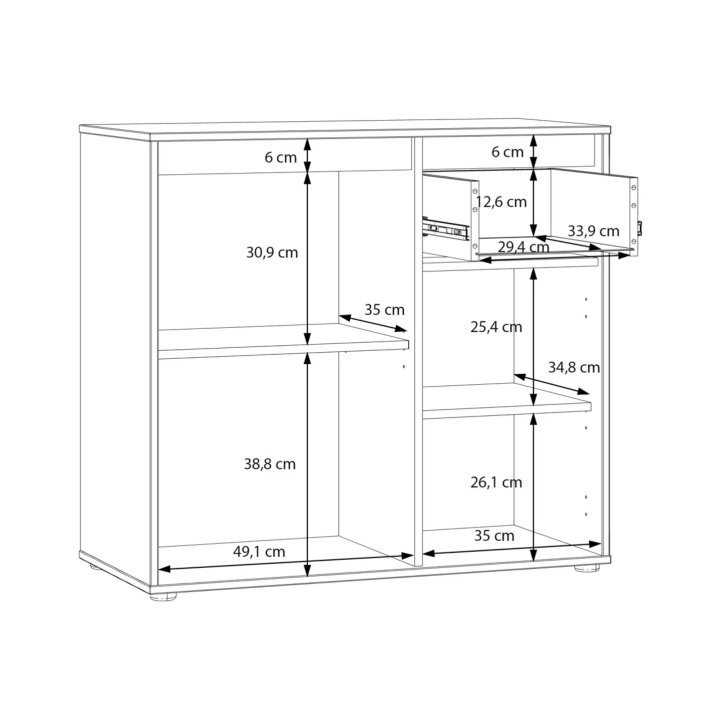 The Eliston 89 cm chest of drawers is a great choice for those looking for a small but distinctive piece of storage furniture. Its compact form conceals a wealth of possibilities - a roomy drawer and two lockable cabinets allow you to organise everyday items, from documents to textiles.