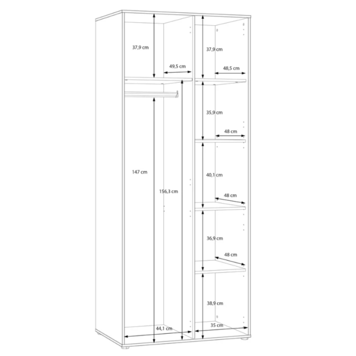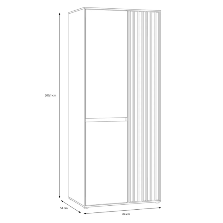 The dimensions of the wardrobe - 84 cm wide, 200.1 cm high and 54 cm deep - mean that it will easily find its place even in smaller interiors, such as a small bedroom, hallway or guest room. Despite its small size, the wardrobe surprises with its capacity.