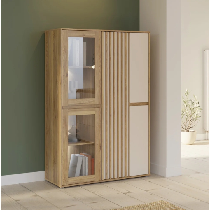 Showcase Eliston 109 cm with 5 doors oak mauvella/sand Black Red White