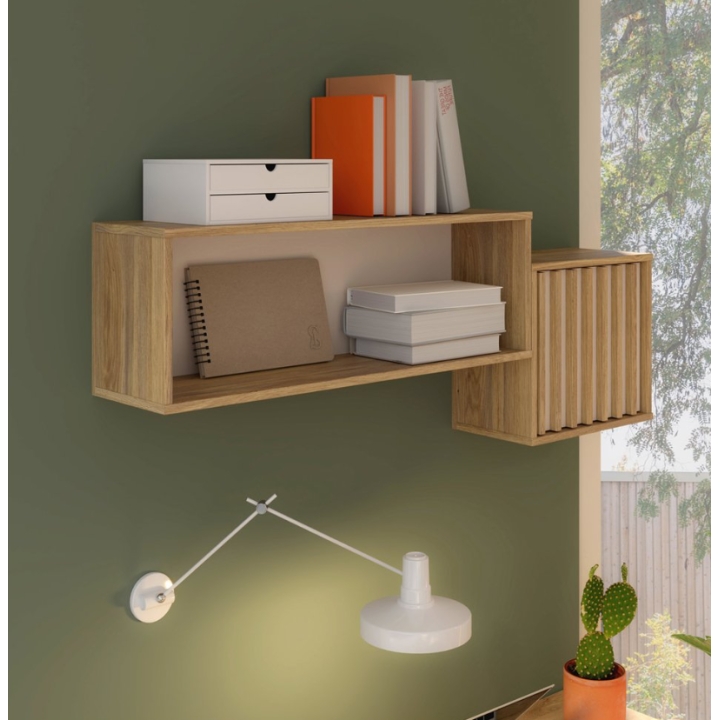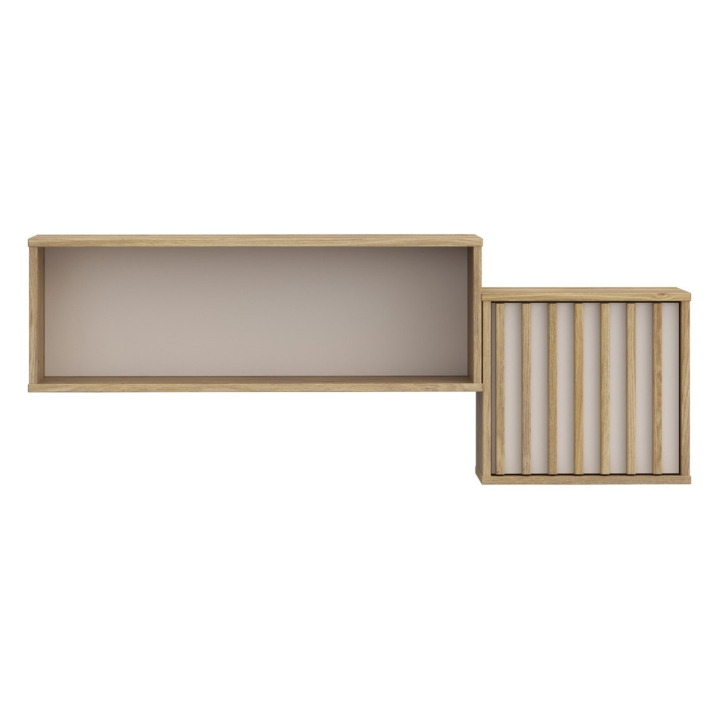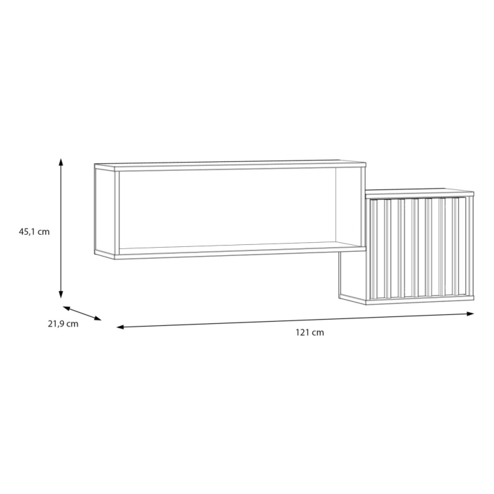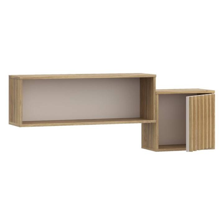The Eliston 121 cm wall shelf with door is the perfect combination of practical storage and aesthetic design. Its clever design allows you to both display your favourite items and discreetly store your everyday items.