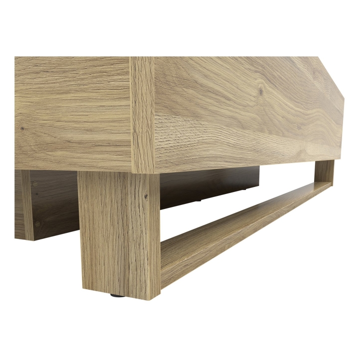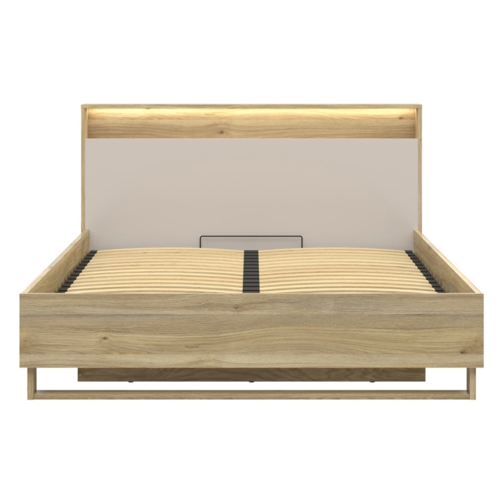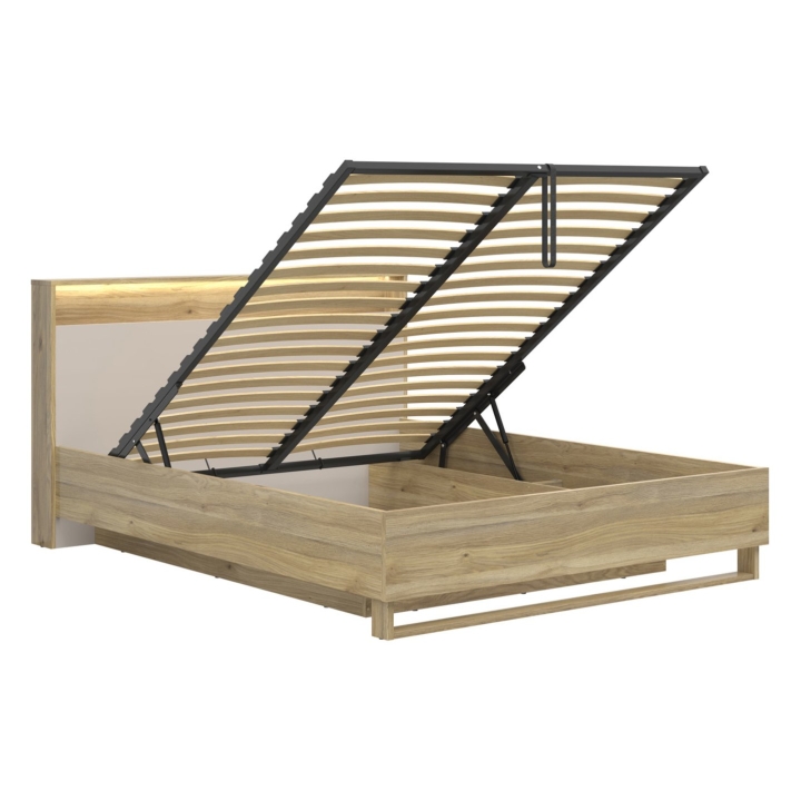 Another great feature of the Dalva bed is the capacious bedding storage, which can be accessed easily by the frame with gas lifts. Thanks to this solution, storing blankets, duvets and pillows is not only possible, but also extremely convenient. The solid furniture board from which the bed is made ensures the durability of the structure and stability during everyday use.