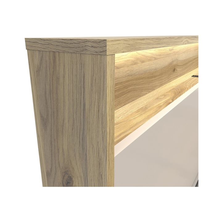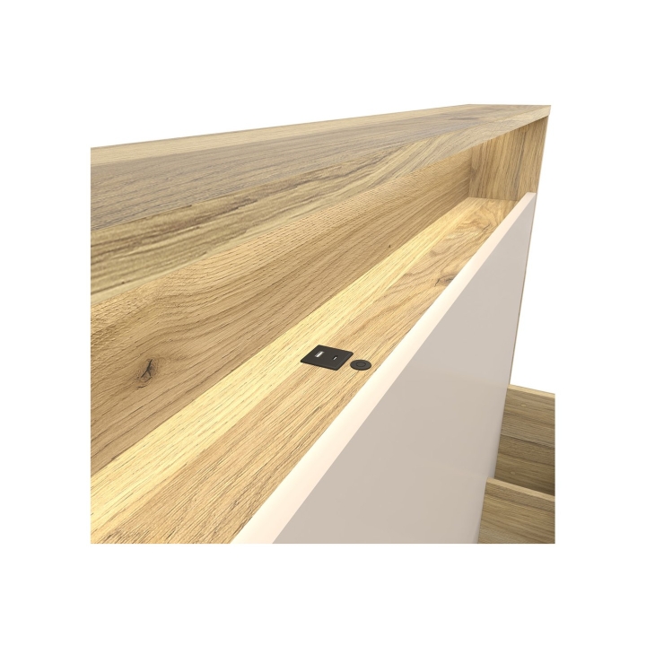 The Dalva 160x200 bed is a modern piece of bedroom furniture that combines minimalist form with functionality to meet the needs of modern users. The design, inspired by Japanese simplicity and the Scandinavian approach to ergonomics and comfort, brings calm, order and practical solutions to the interior. The colour combination of mauvella oak and kashmir creates an elegant, natural and warm composition that will work well in both light and slightly darker bedroom arrangements.