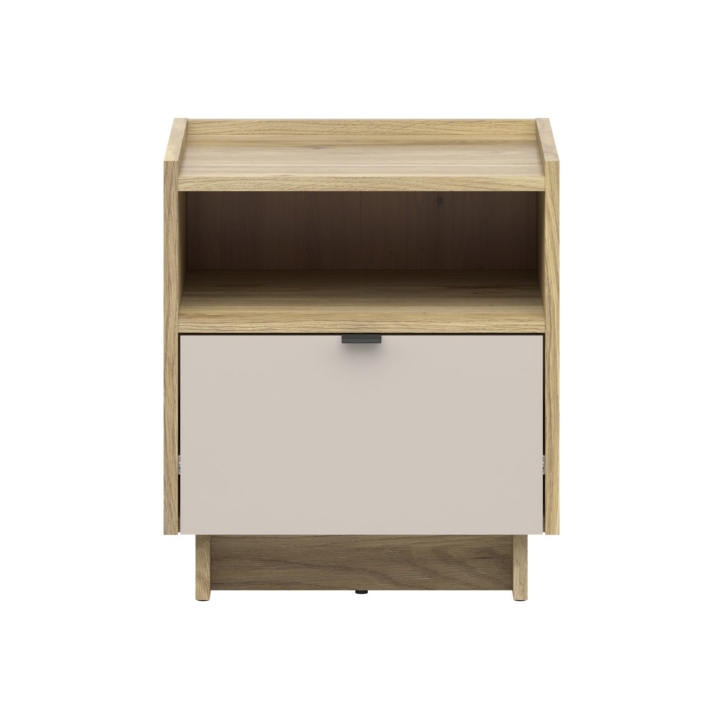 Made from durable furniture board, the cabinet offers one practical drawer to hold essentials - from books to your phone or charger. The extra space on the top can be used as a place for a bedside lamp or a glass of water.