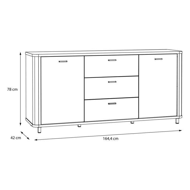 The large Falam chest of drawers is a stylish and functional solution for any modern interior. Offering 164.1 cm in width and 78 cm in height, the piece of furniture is perfect for the living room, bedroom or even a spacious hallway. With a depth of 42 cm, you gain enough space to store your everyday items.
