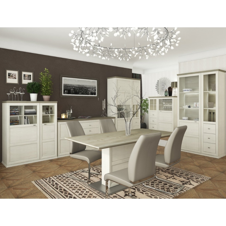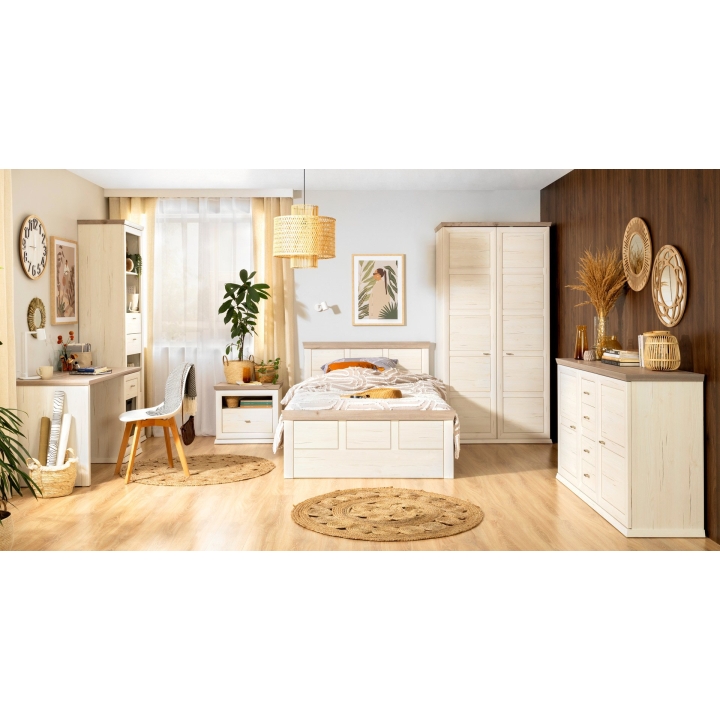 A distinctive feature of this model is the aurelio pine decor - a light shade with a subtle structure inspired by natural wood. As a result, the furniture brings a visual lightness and homeliness to the room. The madagascar-coloured top completes the overall look with a muted contrasting note, adding to the expression of the furniture.