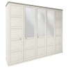 The Camron 255 cm five-door wardrobe with mirror is an option for those who need really large storage space. Its impressive dimensions (254.4 × 209.2 × 60 cm) allow you to comfortably organise your clothes, accessories and other home textiles. The central section is a system of shelves of varying heights - the right place for jeans, T-shirts or jumpers. On the sides, there are two independent segments with rods and additional shelves, which works well for storing longer items of clothing. Shoes, suitcases or seasonal clothing will easily fit on the lower levels.